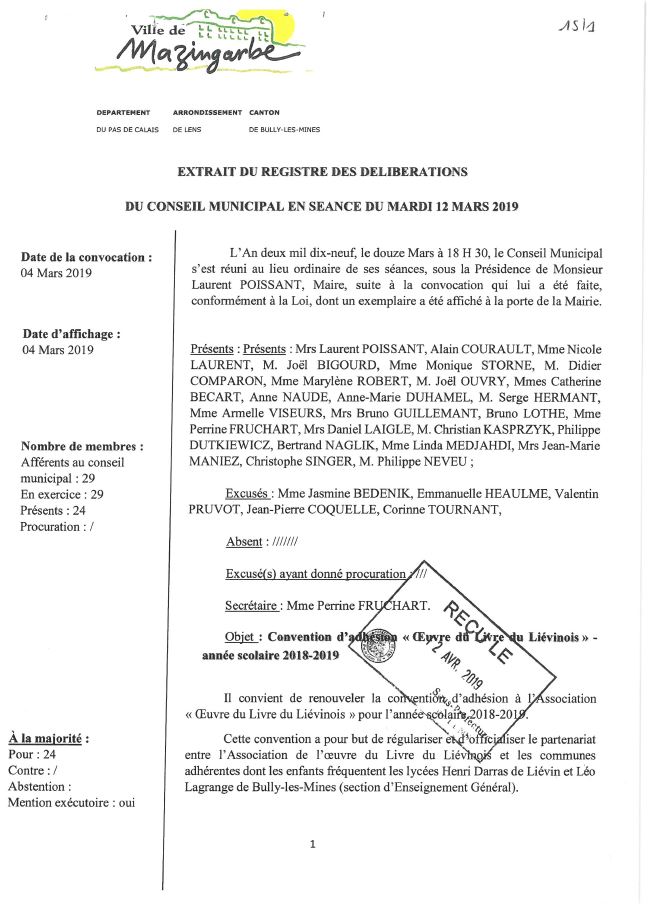 convention d'adhésion oeuvre du livre du liévinois 2018-2019 p1 ; convention d'adhésion oeuvre du livre du liévinois 2018-2019 p2 ; convention d'adhésion oeuvre du livre du liévinois 2018-2019 p3